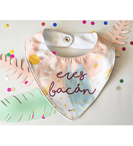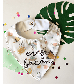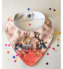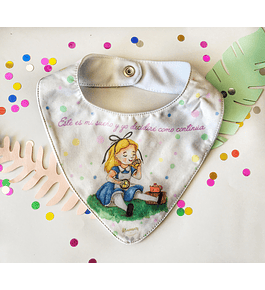 Babero cubierta impremeable y base de algodón. Cierre con broche.