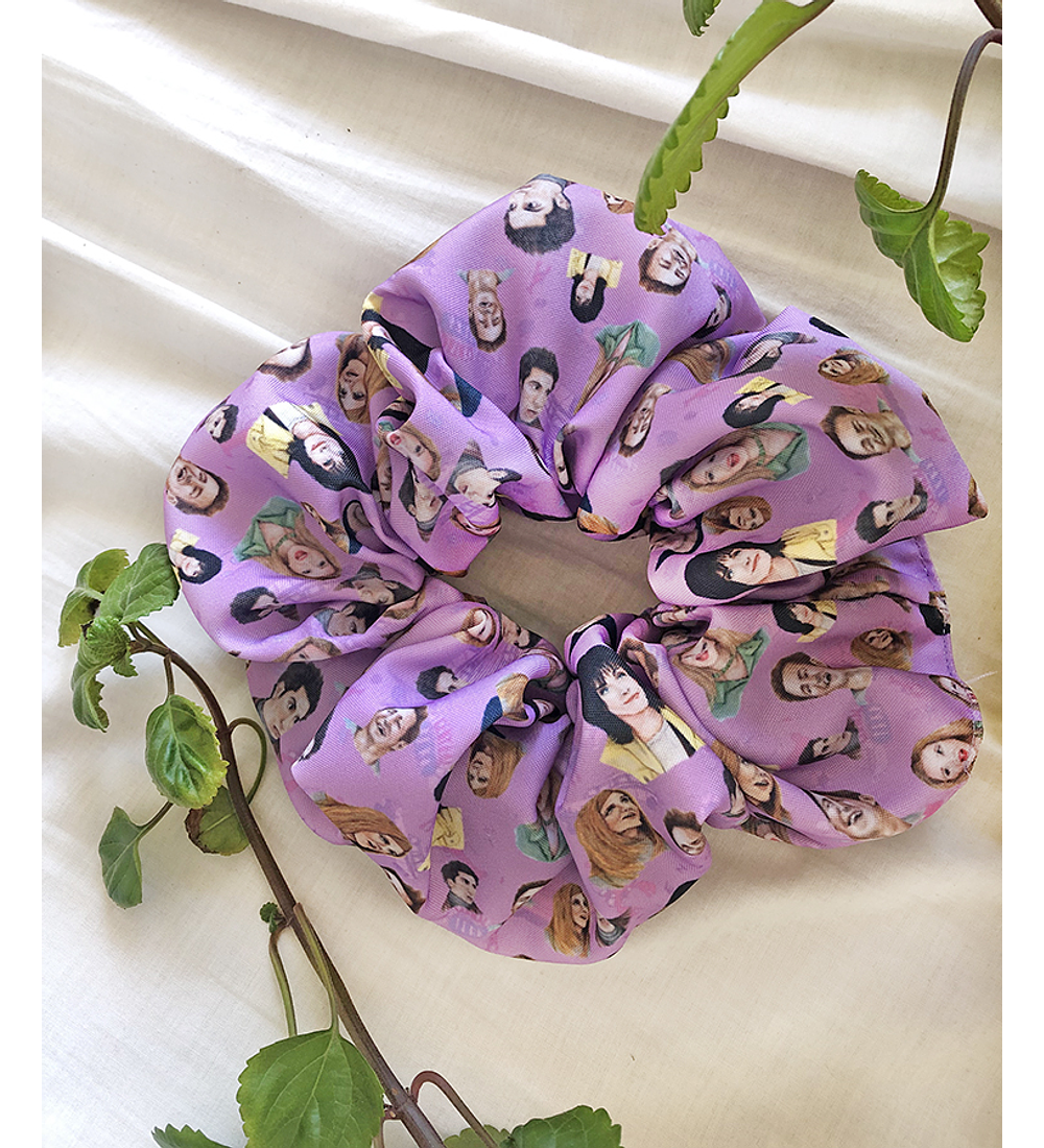 MAXI SCRUNCHIE DE TELA ILUSTRADO A MANO Y CONFECCIONADO EN CHILE.