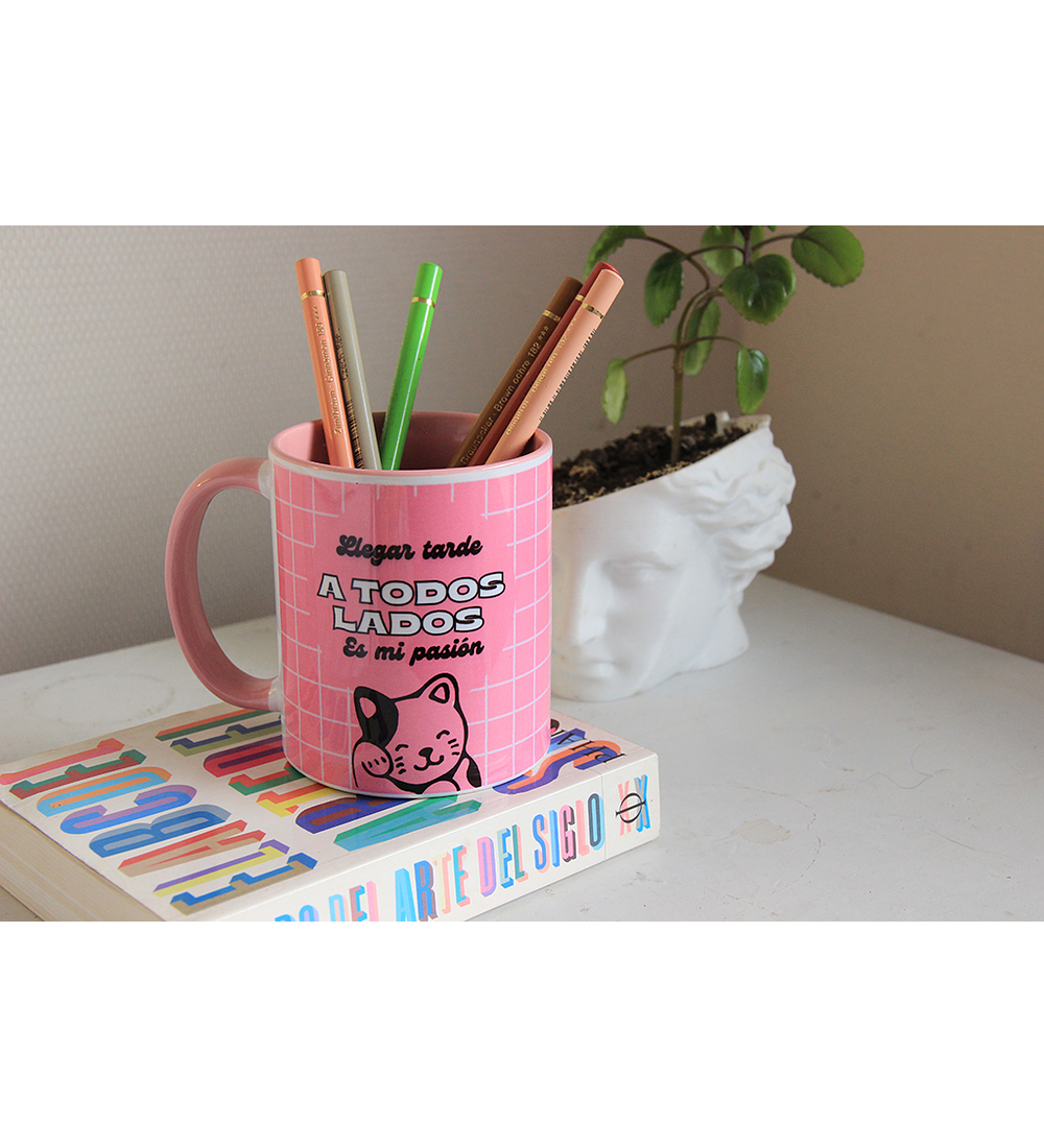 TAZÓN ROSADO LLEGAR TARDE ES MI PASION